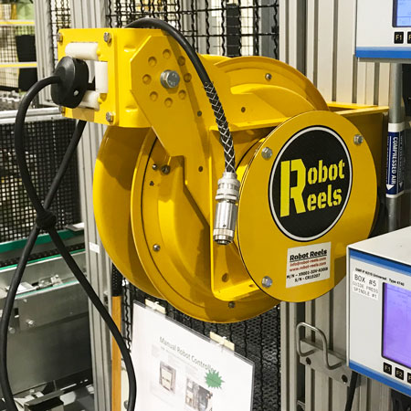 Robot Reels was developed because of a gap in the industrial robot marketplace. In walking through manufacturing facilities nationwide, I witnessed teach pendant cables scattered on the floor around robot cells, causing potential tripping hazards.